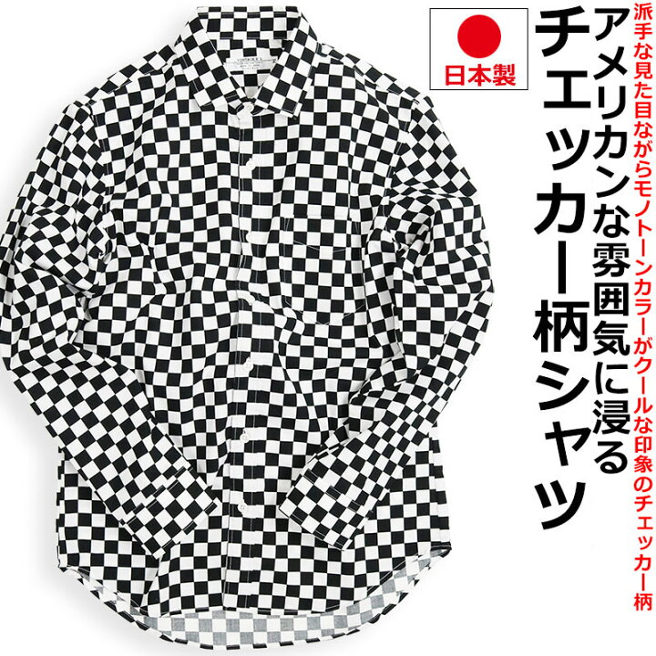 楽天市場 日本製 Vintage El チェッカー柄 長袖シャツ メンズ 市松柄 チェッカーフラッグ Rock シャツ 派手柄 かわいい柄シャツ モノトーン 白黒 アメリカン Quintetto楽天市場店